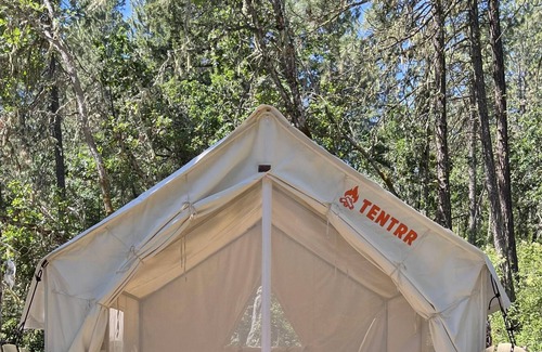 Your Tentrr campsite includes a 10'x12' (120 square feet) safari-style canvas tent on a raised wooden platform. Inside the tent you'll find one queen bed. The tent is big enough for the bed plus one or two extra sleeping bags on the floor. Aside from the canvas tent, campers can also use the extra 5-person pop-up dome tent that’s provided. You'll also have a 6-ft picnic table, outdoor fire pit, 2 Tentrr Adirondack chairs, and a heating source to keep you warm and toasty at night.