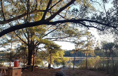 Waterside campsite in an small abandoned vineyard on deep water tidal creek. Deep Creek is brackish and part of the intercoastal waterway that leads to a lock system. Shallow entry for swimming or launching a canoe or kayak. Feel like you're in a back country retreat while only 20 minutes from Virginia Beach!