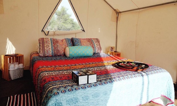 This camp features stunning views of the sunsets on the high plains; beautiful and unique hiking opportunities; convenient access to a local wildlife preserve and amenities to make your glamping stay at Mariposa one to remember.