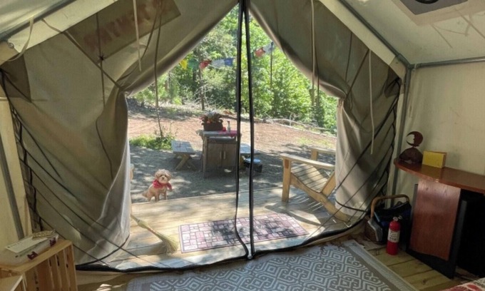Rise just above the hustle; watch the sunrise. Your canvas tent is ready- queen bed; solar lights; fire-pit; picnic table. Tent site is facing woods- stonewalls built with love by my dad in 1960s Find peace, love & tranquility tucked away on mountainside. Minutes from the village of Woodstock; Bearsville, Saugerties- nearby, kayaking & mountain biking - gourmet restaurants, boutique shopping; music.Hike Overlook; discover ruins of an old hotel, or visit KTD Tibetan Monastery. Peace is every step. Come and relax in your own private nature retreat. COVID-19 precautions in place. Pets on leash welcome - with advance notification.