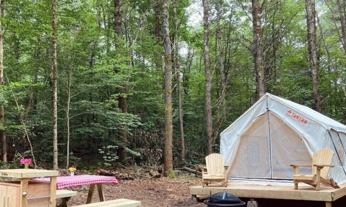 Our Tentrr site is nestled in a private, 32 acre parcel at a high elevation above Cooperstown. Our site is near the top of a seasonal road called "Pink Street Spur". The road is very rough and can be wet in spots so be sure to drive very slowly and use the median to drive on where it gets too high for your vehicle's chassis (keep to the left and keep your right side tires on the road center). If you want to park right next to the tent, you will need AWD/high clearance vehicle. Otherwise you are able to park, and walk to the site. Please explore the trails within the blue boundary marks and use all the firewood you please. Enjoy your stay!