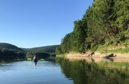 Relax at a riverfront campsite on a quiet river bend on the Susquehanna River in Sugar Run, PA. Enjoy a good book, a walk through the trees, or quiet meditation. This section of the river is calm and good for fishing, kayaking, paddle boarding, and swimming. Thru-paddlers on the river who are completing the 444-mile paddle from Cooperstown, NY, to the Chesapeake Bay are welcome here to refresh at river-mile 245.3. A local outfitter can provide kayaks, canoes and shuttles. Roads are rural and safe for biking or walking. Bring your bike to pedal around Quicks Bend and the River Mountain Road. Birdwatchers, you can just kick back at your campsite and watch the bald eagles soar along the rock cliffs and nest in a large white pine directly across from you. There are many birds nesting on the property to welcome in your mornings, and the trees are full of fireflies to brighten your evenings. The beauty of nature is all around.