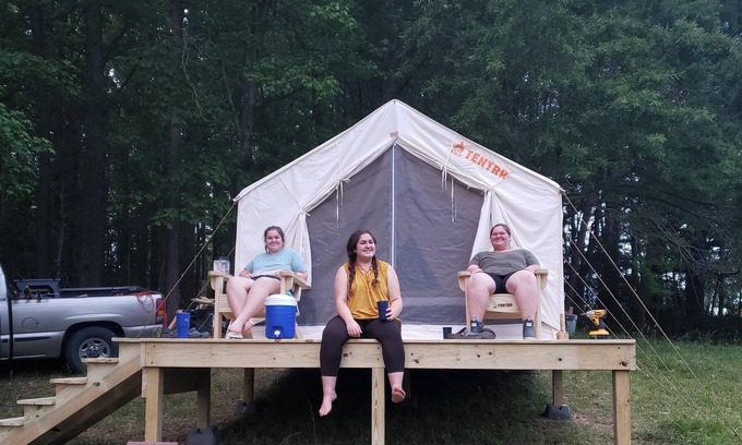 Each campsite includes a 10'x12' safari-style canvas tent on a raised platform, and you'll find one queen bed or a queen-size bunk bed inside (each site is different, see photos for the exact setup). Larger groups can also use the extra 5-person pop-up dome tent that’s provided (you’re welcome to bring your own camping gear too). You'll also have a 6-ft picnic table, outdoor fire pit, 2 Tentrr Adirondack chairs, and a heating source to keep you warm and toasty at night.