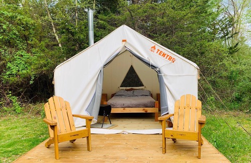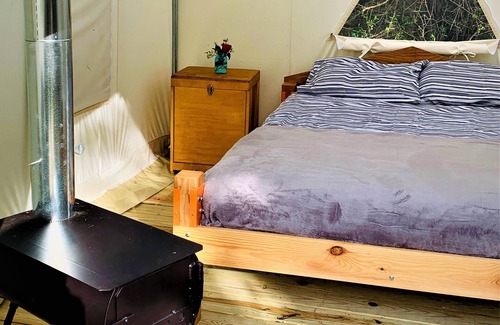 You'll arrive not only to the Tentrr site but to firewood, bedding and cookware to make your trip planning even easier. The site is equipped with solar lights to light the way at night as well as a battery powered lantern for inside the tent. We can't wait to host you!