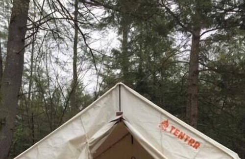 Each campsite includes a 10'x12' safari-style canvas tent on a raised platform, and you'll find one queen bed or a queen-size bunk bed inside (each site is different, see photos for the exact setup). Larger groups can also use the extra 5-person pop-up dome tent that’s provided (you’re welcome to bring your own camping gear too). You'll also have a 6-ft picnic table, outdoor fire pit, 2 Tentrr Adirondack chairs, and a heating source to keep you warm and toasty at night.