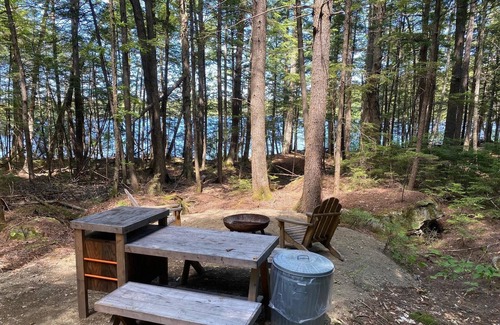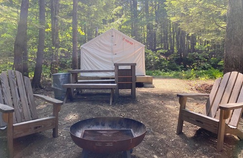 Peaks Kenny is a hiker's dream campsite getaway. Its ten miles of gentle hiking trails offer visitors of all ages and skill levels a chance to enjoy old-growth hardwood forests. While hiking, don't miss the dozen "utilitarian sculptures" created by artist Wade Kavanaugh. After the hike, dip into Sebec Lake for a swim or hop in a canoe or kayak to view wildlife on the 10 miles of shoreline (rentals available). Restrooms are about a 3+ minute walk from the tent.