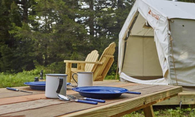 Each campsite includes a 10'x12' safari-style canvas tent on a raised platform, and you'll find one queen bed inside. Larger groups can also use the extra 5-person pop-up dome tent that’s provided (you’re welcome to bring your own camping gear too). You'll also have a 6-ft picnic table, outdoor fire pit, 2 Tentrr Adirondack chairs.
