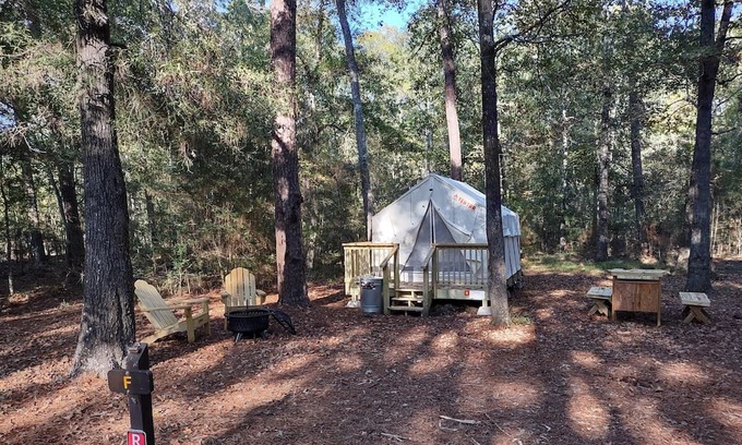 Camp in the piney woods of East Texas, approximately 80 miles north of Houston
