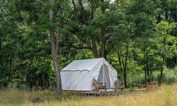 Campsite A is located off the White Oak and Miller's Rock trails. From your parking location near the stables, it is about a 1.5-mile winding hike to the tent. Perched on high ground Campsite A has open skies above and is perfect for stargazing. From your tent, it is also approximately a 1/2 mile hike to the scenic Cranny Crow Overlook with its commanding views of Virginia and West Virginia at 3,200 feet elevation.