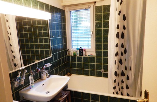 A nice apartment with big terrace and two cats, located just on the edge of Zürich next to the forest end meadows. The 3.5-room apt is composed of bedroom, bathroom, living room, kitchen and guest room, there is also a private parking space. If you are interested to book this apartment we would like to ask you to take care of the two cats who live in the apartment. To get to the apartment from Zürich train station you need 9 min by train and another 10 min by foot.