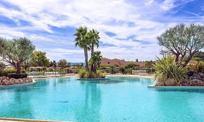 The ideal place for the whole family! The terraced houses, built in Provençal style, are embedded in a well-kept green area. They have a spacious living area and have been comfortably furnished. In addition, these terraced houses have air conditioning and an awning and are furnished to a higher standard than the standard types. Enjoy a relaxed breakfast and sociable barbecue evenings on the fully equipped terrace. In high season, there is an entertainment team for young and old, as well as service facilities such as a bread roll service, a mini-market and a bar. A stay outside the high season is also worthwhile: the bathing area (600 sqm) with water slides and whirlpool provides lots of bathing fun and the ball sports courts, such as tennis, beach volleyball and boules courts or even table tennis tables invite you to play and have fun. The region of Vidauban, in the heart of Provence, captivates with its sun-drenched vineyards and fragrant lavender fields. The historic village of Vidauban invites you to take a stroll. For sports lovers, the region offers numerous possibilities: Hiking, horseback riding, cycling tours, parachuting and paragliding, canoeing and kayaking, rafting and climbing are just a few of them.