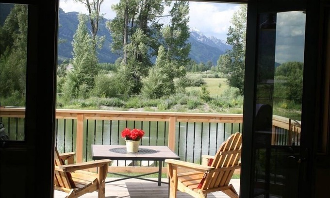 Wonderful views in all directions with abundant wildlife and a recreational pond just steps away!. Views of the Grand Tetons, Jackson Hole Mountain Resort, Teton Pass and Phillips Ridge, Sleeping Indian, hay fields. Very private yet convenient to all of Jackson Hole.