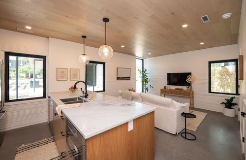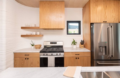 Located in the heart of the East Austin Community, this unique 2-bedroom home was built leveraging ICON's proprietary 3D printing construction technology & advanced material designed to last longer than traditional building materials. The East ATX Retreat is comfortable, beautiful and inviting.