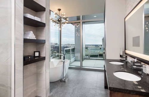 Texas A&M Hotel and Conference Center offers 250 air-conditioned accommodations with laptop-compatible safes and coffee/tea makers. 50-inch Smart televisions come with premium cable channels. Bathrooms include showers, bathrobes, complimentary toiletries, and hair dryers.
