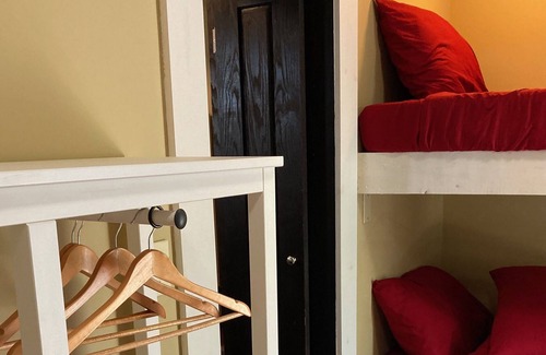 This cabin accompanies another cabin in the same area that shares a fire pit, barbeque grill, but there is plenty of room for social distancing. There are tiny homes and RVs at the front of the property but the back of the property is reserved for cabin guests only which includes a walking trail around a pond and through very private woods.