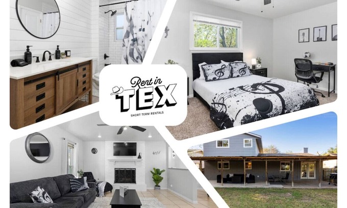 Welcome to a unique getaway where music meets comfort! This spacious home is perfect for families and friends, featuring music-inspired decor throughout. Enjoy a cozy living room, a fully equipped kitchen, and a game room with a pool table and board games. Relax on the outdoor patio or unwind in one of the Four stylish bedrooms. With space for 8 guests, this is the ideal retreat for music lovers and game enthusiasts. Book now for a one-of-a-kind Austin, Texas experience!