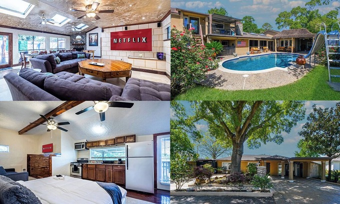 Ultimate Texas Getaway – Recently remodeled by renowned Houston designers, this spacious 8-bedroom retreat offers the perfect blend of Texas luxury and fun for large and small groups.