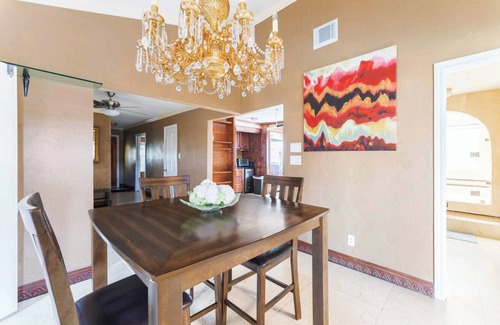 This expansive estate features 8 beautifully appointed bedrooms, 4 full bathrooms, and a spacious entertainer’s living room. The private mother-in-law king suite offers its own full kitchen and office for added convenience and privacy. Nestled in a quiet, safe neighborhood, the property provides easy access to Houston’s top nightlife, upscale shopping, and dining. With luxurious amenities and relaxing spaces, it’s the perfect spot for unforgettable reunions, retreats, or business stays.