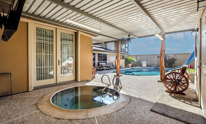 Texas Size + Pool + Hottub + Bar + 8 bedroom+ Ping Pong + Guest Suite is located in Spring Branch East. Texas Size + Pool + Hottub + Bar + 8 bedroom+ Ping Pong + Guest Suite provides accommodation, featuring Parking, Pet Friendly, Security/Safety, among other amenities. This House features Parking, Pet Friendly, Security/Safety, to make your stay a comfortable one.