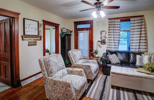 Beautiful three bedroom bungalow with beautiful original woodwork and built in!! Enjoy fully stocked kitchen with coffee bar. Washer and dryer on back porch!! Enjoy enclosed front porch with windows and swing chairs.