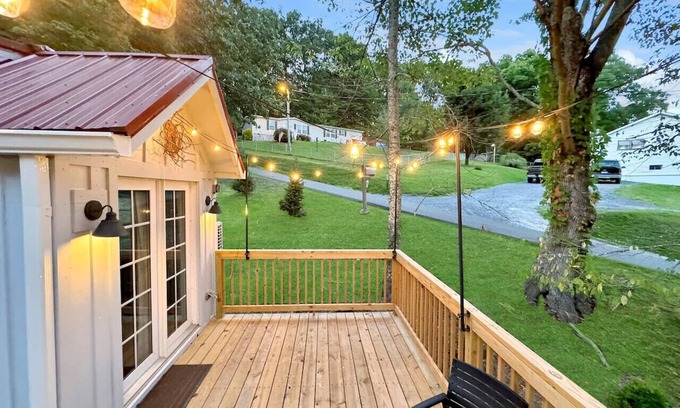 Welcome to Acorn, a cozy tiny home nestled in the heart of Summersville, WV. This adorable retreat offers a private driveway and charming patio, making it the perfect secluded escape. Enjoy mornings on the porch under glowing lights, relax by your private fire pit, and take in the serene surroundings. With rustic charm and modern amenities, Acorn is an inviting, peaceful getaway designed for ultimate comfort.