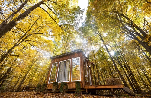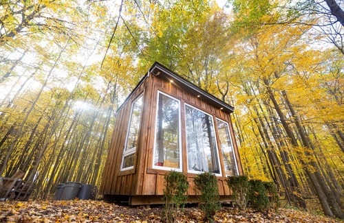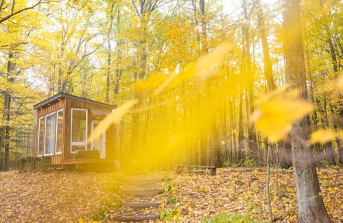 A great disconnect from city life. The Adler Cabin (107 square feet) at Fernwood Hills, nestled in a beautiful forest in the heart of South Western Ontario, cozy and romantic.