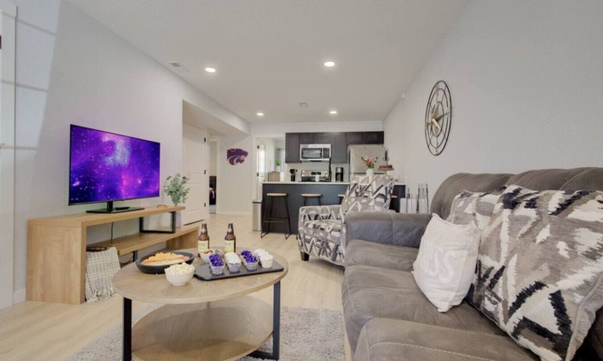 Enjoy unbeatable views of Bill Snyder Family Stadium from this updated 4 bed, 2 bath condo in the heart of Manhattan. Sleeps 8 and includes 4 game day parking passes. Located at College & Kimball, it’s walking distance to the stadium and minutes from K-State campus, NBAF, and Tuttle Creek Blvd. Perfect for game weekends, alumni gatherings, campus visits, or family getaways in the Little Apple. Book now to reserve your unforgettable trip to MHK!