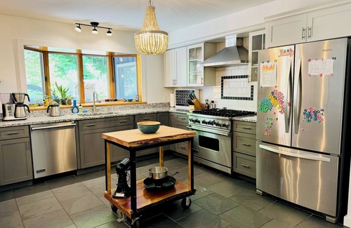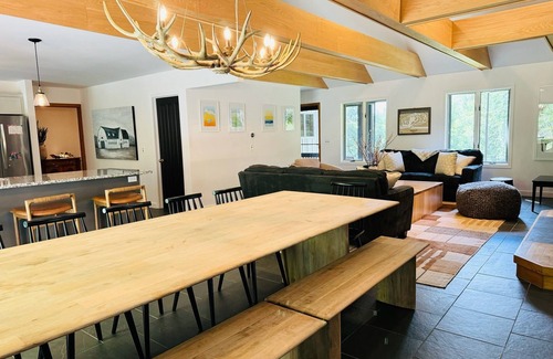 Take it easy at this unique and tranquil getaway with year-round pool, outdoor hot tub, and close proximity to area attractions. Its lux amenities and chic style make it comfortable for all.
