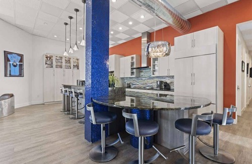 Open floor plans and spacious living areas combine to create more than enough room for your group, and deluxe furnishings contribute to a luxurious feel. The expansive kitchen features stainless steel appliances, granite countertops, 2 sinks, 6-burner induction stove, 2 dishwashers, 2 ovens, a WOLF espresso/coffee maker, wine chiller, and microwave. The dining areas can seat up to 10 people: The expansive kitchen island has additional seating for 9 more! The entertainment area offers plenty of comfortable seating around the large flat-screen TV. Take in the sunset and city life below on the balcony lounge chairs. Unwind in the deep jet tub and large glass jet showers. There is a private washer/dryer in the unit. This unit can accommodate up to 13 people. Each room is sports themed and decorated with unique items from each of the major Denver sports teams: 2 can sleep in the "USA" room with a queen-sized bed, 2 sleep in the "Avalanche Room"with a queen-sized bed, 2 sleep in the "Rockies Room" with a King-sized bed, 1 sleeps in the " Nuggets Room" with a twin bed, 4 can sleep in the full-sized bunk beds in the "Rapids Room", and 2 in the King Master Suite. Each room is tastefully designed with the highest quality beds, linens, furniture, and décor.