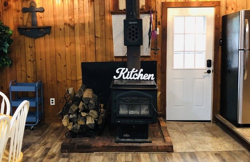 Upstairs is a loft style room with a King size bed and futon and 3rd room with a Full size bed. Upstairs has a full bathroom with a standup shower. Washer and Dryer included on second floor.