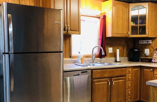 Full eat in kitchen with extra breakfast table for two. Stainless steel appliances and gas stove. Plenty of seating area throughout the downstairs. Living room has a 65” TV.
