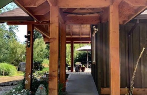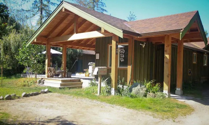 Private safe parking, 2 ponds for viewing pond life and for families of deer that frequent the property. Enjoy a fresh brewed tea or coffee on the front deck overlooking one of the ponds. Chickens and honeybees working hard all day. Grab something from the garden, berries or an apple from one of the many trees to choose from. 5-minute walk to a school playground. Walking distance to a Brewhouse and Distillery. Enjoy golf or mountain biking. Jump off one of the docks into the beautiful ocean. The stars twinkle bright in the night sky.