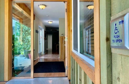 Your spacious suite with gas fireplace is in the family home, nestled in a sunny forest, setback quietly off an easy access main road in Beachcombers, Gibsons, B.C. Enjoy all the amenities of this oceanside town. Close to beach and local shops but set in the woods. Wheelchair accessible suite with a queen bed, exposed beam, bathroom has a wheel in shower and grab bars for piece of mind. Cable/Netflix/YouTube/WiFi, coffee maker and tea. There is a $20 fee for each friendly pet per night.