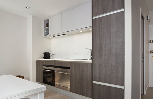 The kitchen is equipped with an oven, a stovetop, and a dishwasher, as well as a coffee maker, an electric kettle, and cookware. Bathroom amenities include a hair dryer, towels, and toilet paper. And you won't have to pack extra clothes, because you'll also have access to laundry facilities. Other amenities include bed sheets, concierge services, an ironing board, and heating.