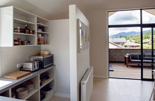 The large deck is the perfect spot to enjoy your morning coffee, gazing out towards the mountains, before gathering your group to explore Hanmer Springs.