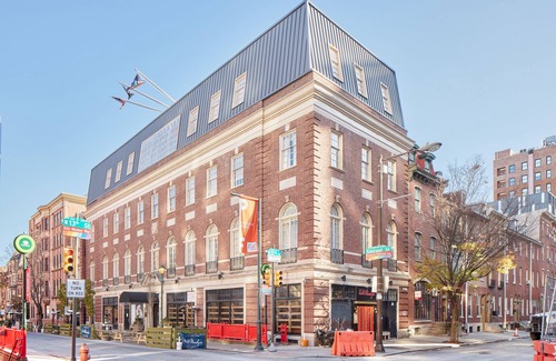 A place that balances historic charm with contemporary conveniences, The Arco hits the spot. Colonial architecture with a brick exterior. And a toasty fireplace surrounded by modern lobby artwork. Each space includes rustic hardwood floors, paned windows, and bathrooms with French countryside wallpaper. The Chromecast-enabled television can stream anything from historical dramas to your favorite rom-com. You'll be in the heart of Philly, and Midtown Village provides ample activities. Walk around South 13th Street for an array of bars and international cuisine — the bao buns from DanDan will leave your tastebuds happy. There's also the tranquil park of Rittenhouse Square. By the time it's checkout, you'll be ready to book your next stay at The Arco.