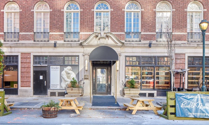 A place that balances historic charm with contemporary conveniences, The Arco hits the spot. Colonial architecture with a brick exterior. And a toasty fireplace surrounded by modern lobby artwork. Each space includes rustic hardwood floors, paned windows, and bathrooms with French countryside wallpaper. The Chromecast-enabled television can stream anything from historical dramas to your favorite rom-com. You'll be in the heart of Philly, and Midtown Village provides ample activities. Walk around South 13th Street for an array of bars and international cuisine — the bao buns from DanDan will leave your tastebuds happy. There's also the tranquil park of Rittenhouse Square. By the time it's checkout, you'll be ready to book your next stay at The Arco.