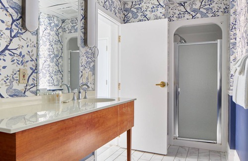 A place that balances historic charm with contemporary conveniences, The Arco hits the spot. Colonial architecture with a brick exterior. And a toasty fireplace surrounded by modern lobby artwork. Each space includes rustic hardwood floors, paned windows, and bathrooms with French countryside wallpaper. The Chromecast-enabled television can stream anything from historical dramas to your favorite rom-com. You'll be in the heart of Philly, and Midtown Village provides ample activities. Walk around South 13th Street for an array of bars and international cuisine — the bao buns from DanDan will leave your tastebuds happy. There's also the tranquil park of Rittenhouse Square. By the time it's checkout, you'll be ready to book your next stay at The Arco.