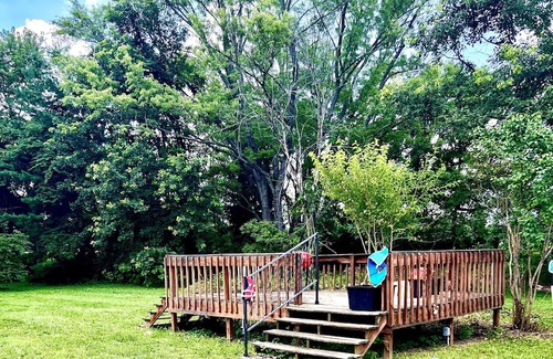 This secluded property sits on five acres with a pool available during the spring and summer months, outdoor barbecue grill and over 20 different type of trees on the property. This is perfect for your extended family vacations, family reunions, or retreats! Come experience the Art of Seclusion.