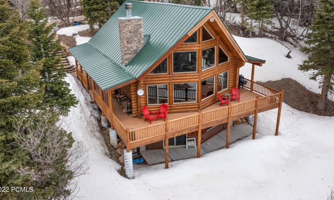 This newly constructed log cabin is located in the beautiful Tollgate Canyon area with wood floors and wood vaulted ceilings. There are 3 large bedrooms that sleep up to 10 people and 2 bathrooms. There is a loft area that can be an extra sleeping space or a working space. The large main level great room has a oversized wood burning fireplace. Sliding doors to the main level deck and lower level hot tub patio face north to Lewis Peak and unobstructed spectacular views. Three Arcade games to entertain the kids and adults.