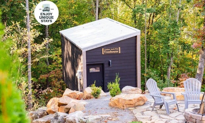 This listing is for one private treehouse that comfortably sleeps up to four guests. Inside, you’ll find a thoughtfully designed layout featuring a queen bed, a lofted queen bed above the bathroom, a private bathroom with a shower and toilet, and a compact kitchenette with a bar sink, microwave, mini fridge, and basic essentials. The space is perfect for solo travelers, couples, or close-knit groups looking for a memorable stay in the treetops.