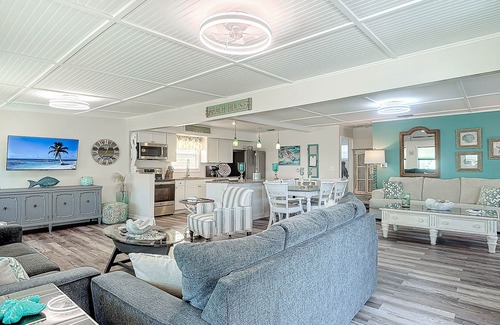 We strive to provide a beautiful, clean and comfortable home with amenities and customer service to allow our guests to create wonderful memories and experience a relaxing beach vacation. We encourage you to read our guest reviews and how many are return guests. We aren't the cheapest for a reason, but we are one of the absolute best. We are on the desired North End of Fort Myers Beach. Access to all the fun places is minutes away on bike or foot. This home consists of 3 separate living spaces giving you a total of 4 bedrooms and 4 baths; great for extended families where you have a separate suite and efficiency downstairs. It’s only a 3-minute walk from the house to the corner of Estero Blvd. You’re close enough to the beach yet far enough away for seclusion and no street noise.