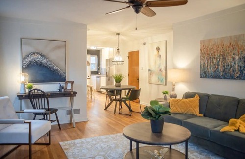 You'll feel at home in this renovated second story flat! Spacious & open floorpan w large windows & plenty of sunshine. You'll enjoy the new kitchen, w stainless appliances & breakfast bar w barstools to enjoy your complimentary Keurig coffee! Large bedroom w luxury king-sized bed. Excellent location-walkable to Grandview Ave/bars/restaurants/shops, close to Upper Arlington, OSU & downtown. Are you ready for some football? 7 min to Ohio Stadium/The Horseshoe! Go Buckeyes!