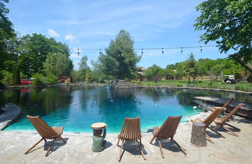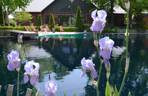You will see our grandchildren and little helpers scurrying about. The natural pool is open to our guests from 10am- 9pm. Every child 5 and under, or any non swimmer, must provide their own life jacket when in or around the pond. If any non swimmers are occupying the space without a life-jacket, they will be asked to leave the area. Swim at own risk- no lifeguard on duty
