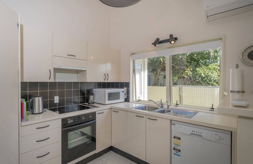 Fronted with nikau palms and boasting ample conveniences, the well-equipped kitchen-dining is on hand to self-cater your stay. Theopen planlivingand dining area opens via ranch sliders onto acosyand partially coveredcourtyard, perfect for alfresco meals cooked on the gas BBQ.