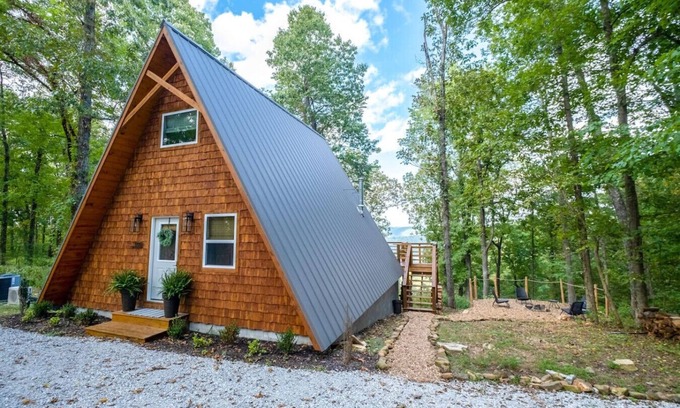 The Back Porch A-Frame, with all the modern amenities, is conveniently located between Town Square and Blanchard Springs Caverns. Enjoy your time relaxing on the back porch that overlooks the beautiful Sylamore Creek Valley after a day of adventures in Mountain View!