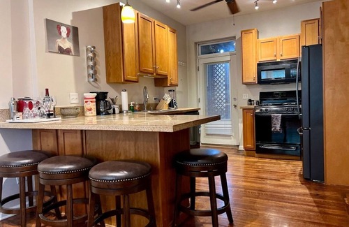 The Banksy, a modern 2-story duplex just 3 miles from downtown is ideal for large groups. Host your Bachelor / Bachelorette group, friends and family. Pre-game on the rooftop deck before walking to concerts or Bulls and Blackhawks games at the nearby United Center. Or burn a real wood fire in the firepit and melt the night away as you plan the next days activities. Stay centrally located in the West Loop with easy access to all that Chicago has to offer. New long lasting memories await !
