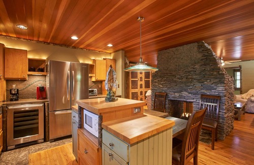 If you want a relaxing stay in beautiful Blowing Rock, with easy access to all the shopping and restaurants without the hassles of parking, you will love Bark Bungalow. Tucked away on a quiet one-way side street, half a block from Main Street, Bark Bungalow offers an abundance of rustic charm and a very uniquely crafted interior--wood floors, a gourmet kitchen that would be at home in a house twice this size, a gorgeous dry stack stone gas logs fireplace, a master bedroom with king bed and a second bedroom with a queen, plus two adjoining full baths. Note: Wood is not provided for the fireplace.