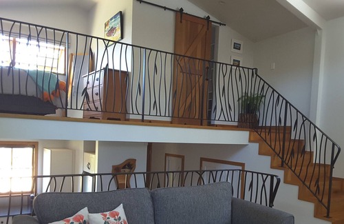The Barn is completely detached from the cottage to ensure a private quiet space. Recently converted into a dwelling with two levels and covered outside decking area. The Barn has all new appliances, recycled Rimu flooring and a wood burner for the cold winter nights. The warming, comfortable and contemporary interior will have you feeling like you are right where you need to be in your very own Barn away from home! Complimentary freshly baked sourdough bread with preserves and honey when given advance notice. (Two night minmum) Portacot available.