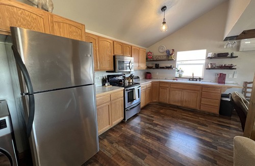 Kitchen is fully stocked with all standard appliances, dishware for 4, coffee, teas, spices, staple food items and basic cleaning supplies.